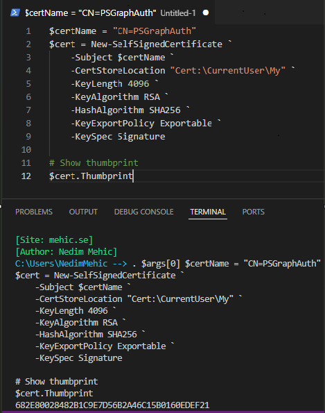 With the prerequisites covered, the first step is to create a certificate. Start PowerShell as admin and type in.