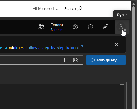 - Query box: A bar where you can manually build your query, or see the auto-populated query if you selected one from the left pane (t ex Sample Queries).