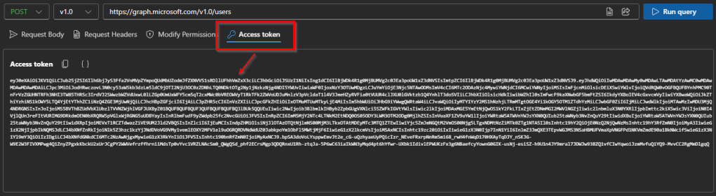 - Access Token: The Access Token tab shows your temporary key that lets Microsoft Graph know who you are and what you’re allowed to do. You can copy this token and use it in other tools (like Postman or your own app) to make Graph API requests without signing in again.