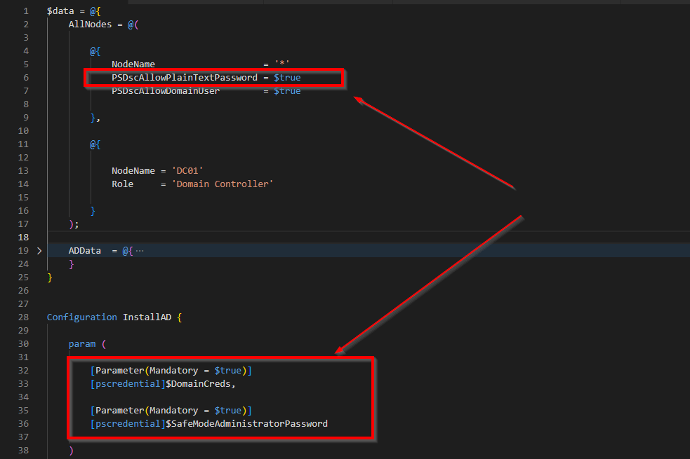 PSDscAllowPlainTextPassword = $trueentry from the configuration data - We added