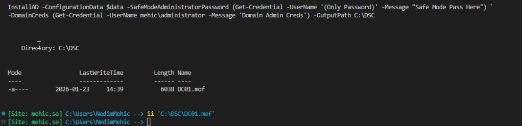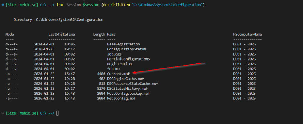 MOF files are regular files stored on disk and are not protected by default. They are often copied between systems, stored on file shares, or passed around during testing. If those files are exposed, the credentials inside them are exposed as well. In a domain environment, this can quickly become a serious security risk, especially when privileged accounts are involved.