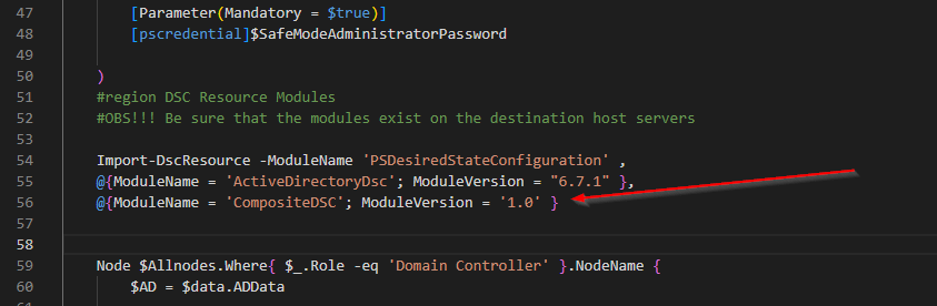 What we need to do now is to make sure that we have CompositeDSC module and all the other required modules on our target node. When that is done, we need to edit our configuration document and add our new module under the Import-DscResource section.