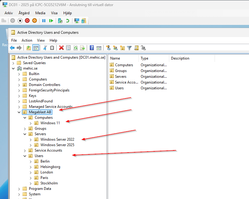 If we run the code again we will get our new Domain Controller with the whole OU structure.